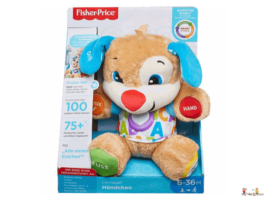 Und weil sich jedes Kind in seinem eigenen Tempo entwickelt, verfügt das kuschelig weiche Hündchen über die Smart-Stages-Technologie, damit die Eltern die Stufe auswählen können, die für ihr Kind guten geeignet ist.