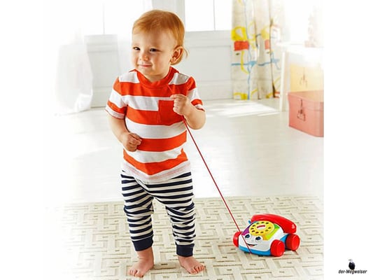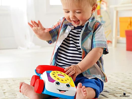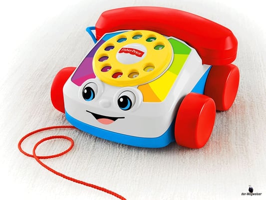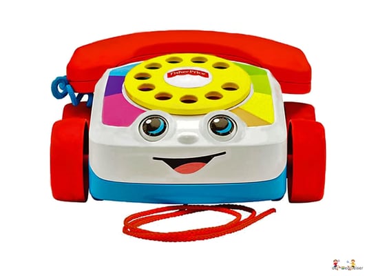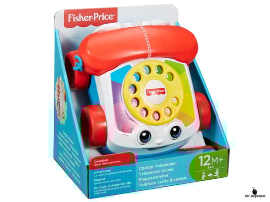 „Dring-dring!“ Das Plappertelefon von Fisher-Price begrüsst Ihr Kind mit einem neuen Design. Dieses klassische Nachziehspielzeug ist jetzt moderner gestaltet, macht aber genauso viel Spass und sieht mit seinem niedlichen Gesicht genauso toll aus wie immer. Es hat eine drehbare Wählscheibe, macht Telefonklingelgeräusche und seine Augen bewegen sich, wenn Ihr Kind das Telefon hinter sich herzieht. Das am Hörer befestigte Kabel sorgt dafür, dass das Telefon nicht verloren geht.