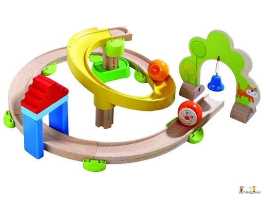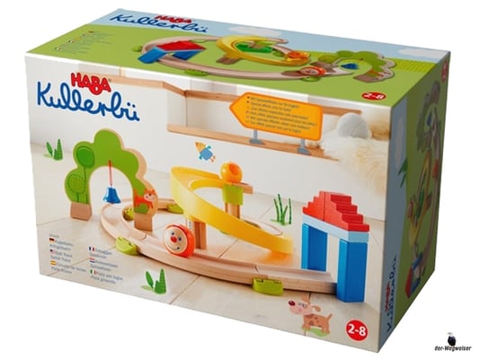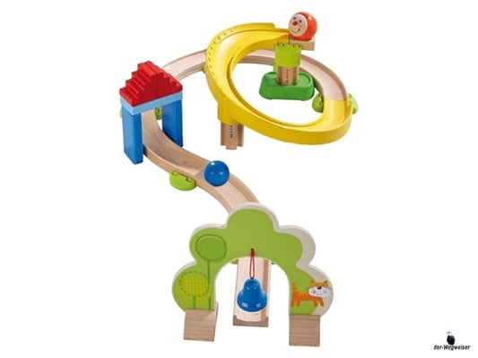 Die Kringelbahn der HABA-Kugelbahn Kullerbü macht ihrem Namen wirklich alle Ehre! Gleich mehrere Kurven sorgen für eine Extraportion Kringelspass.