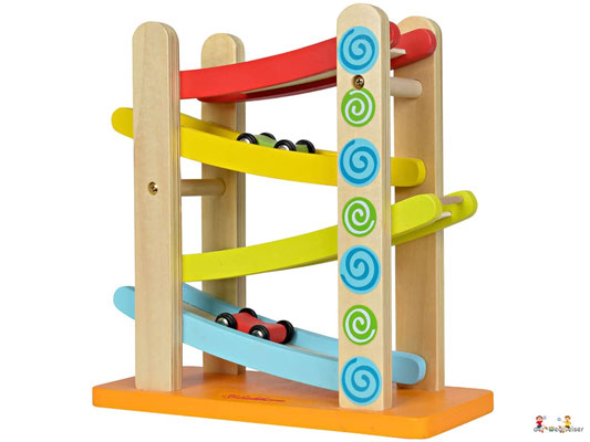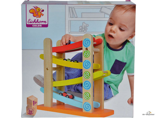 Die Ssale Eichhorn Color Autorennbahn mit den vier Etagen sieht s30 klasse aus und ist für Kinder eine wunderbare Beschäftigungsmöglichkeit. Die Autos können von der oberen Etage bis zur letzten nach unten fahren, denn die einzelnen Ebenen sind an den Enden so konstruiert, dass die Autos im Zick-Zack-System nach unten rollen.
