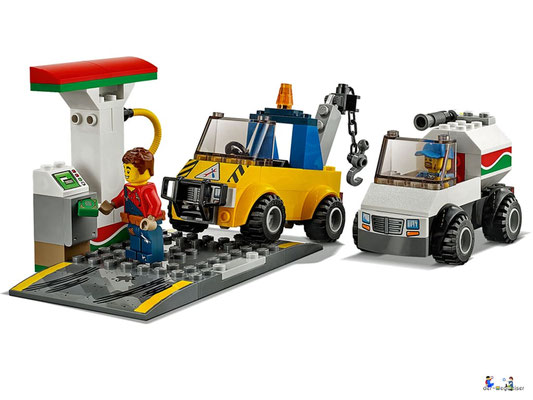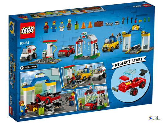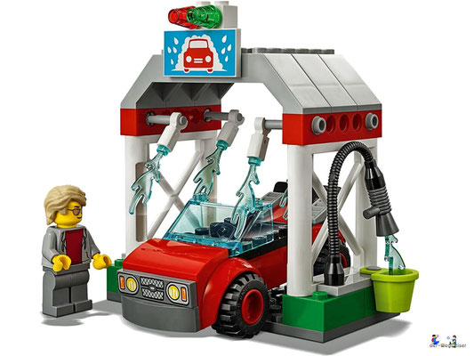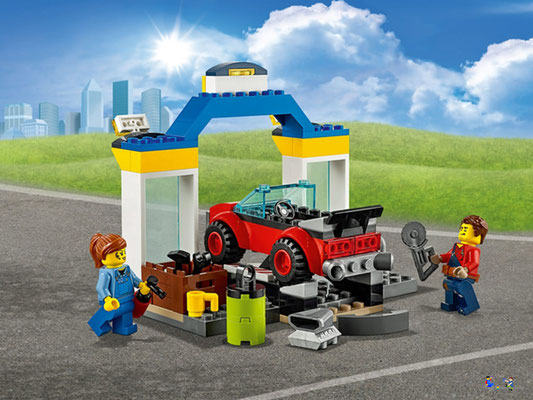 Es umfasst eine Autowaschanlage, einen Sportwagen, einen Abschleppwagen und einen Tankwagen, eine Autowerkstatt und eine Tankstelle mit einem speziellen Starter Bauelement, mit dem sogar