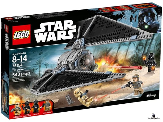 Rebellen. Der TIE Striker Verfügt über grosse verstellbare Flügel, ein von vorne und von oben zugängliches Minifiguren-Cockpit und ein aufklappbaren Heckstauraum sowie zwei