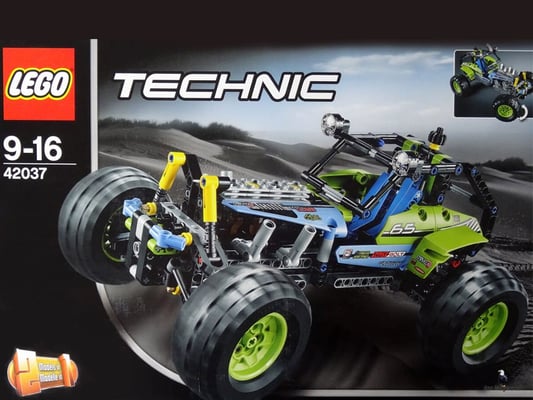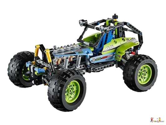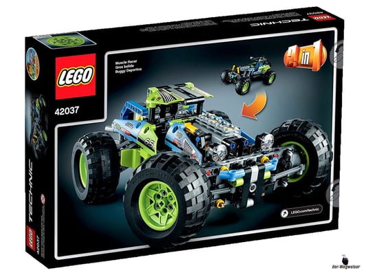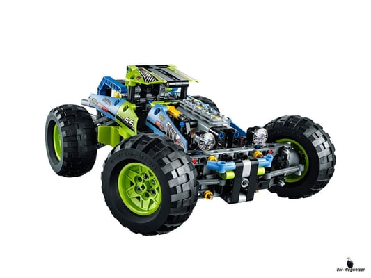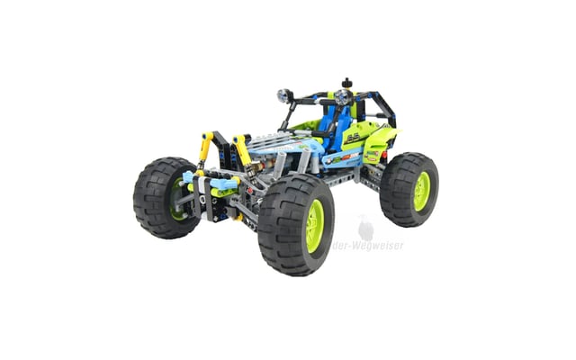 Düse Sselten mit diesem LEGO Technic Formula Off-Roader über hügeliges Gelände! Das Modell begeistert mit seinem peppigen lindgrün-blauen Farbmuster, den gewaltigen grobstolligen Reifen auf knallgelben Felgen, der funktionstüchtigen Lenkung, der robusten Karosserie, dem hochklappbaren Fahrerkäfig, den grossen Dachscheinwerfern und dem detailgetreuen 4-Zylinder-Motor mit beweglichen Kolben. Dieses realitätsgetreue Modell ist mit seiner superrobusten Radaufhängung auf heftigste Offroad-Action getunt! Lässt sich in ein superschnelles Rennauto umbauen.
