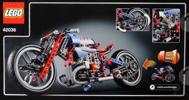 Die Besonderheit im Lego Paket 42036 ist, dass es ein 2-in-1-Modell ist. Das heisst es kann daraus ein Strassenmotorrad oder ein Retro-Bike gebaut werden.