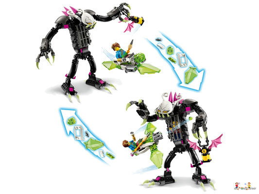 Das Set basiert auf der spannenden Handlung der TV-Serie DREAMZzz. Dein Kind kann zunächst den bösen Albwärter bauen und Mateo und Z-Blob dann helfen, deren Freund aus den Fängen des Bösewichts zu befreien, bevor der Albwärter Cooper zum Albtraumkönig bringen kann. 1 Set, 2 Abenteuer Dein Kind hat die Wahl zwischen 2 Modellen, die es bauen kann, um Cooper vor dem Albwärter zu retten.