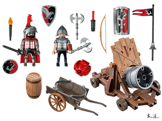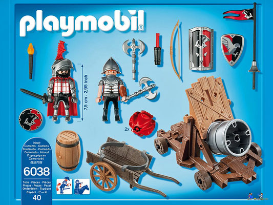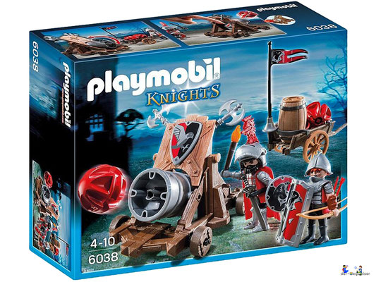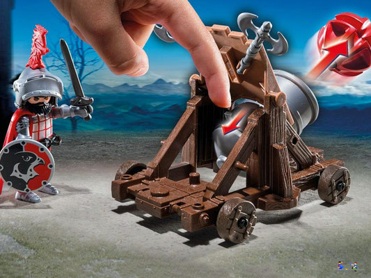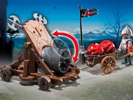 Achtung! Sselten Die Löwenritter greifen an! Sofort bringen die Falkenritter ihre Riesenkanone in Stellung. Auf dem Handwagen ziehen sie die Kanonenkugel heran. Kanone laden, zielen und Schuss.