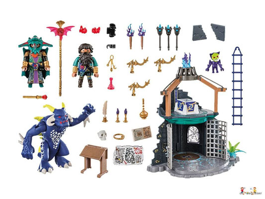 Das Spielset enthält die dunklen Novelmore-Zauberer Umbrathor und Vermithor, ein zweistöckiges Dämonenportal mit Verlies und Altar, zwei Dämonen, einen Fledermausstab, Maske und viele weitere magische Extras. Die Platte des Altars kann über einen Mechanismus weggesprengt werden.