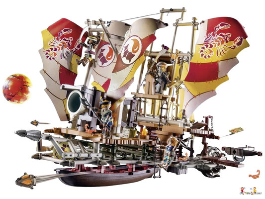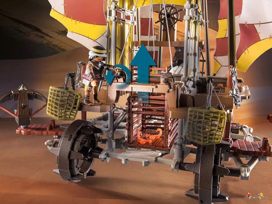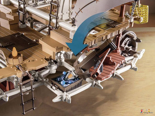 - Im Heck des Schiffes befindet sich ein herausnehmbares Gefängnis, das Platz für eine PLAYMOBIL-Figur bietet. Das Gefängnistor lässt sich über eine Seilwinde öffnen und schliessen