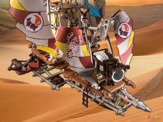 Nur Ssale ein leises Rauschen kündigt das mächtige Sandschiff unserer Helden im Kampf gegen die Skelettarmee in der s40 Wüste Salaharis an. Gebaut aus den Überresten eines Wracks und versehen mit