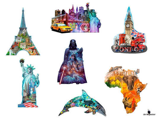 Die Silhouette-Puzzles mit ihren markanten Konturstanzungen sind echte Hingucker – dekorativ und herausfordernd zugleich. Die ungewöhnlich geformten Randteile und die individuell gestalteten Puzzleteile sorgen für ein spannendes und abwechslungsreiches Puzzlevergnügen der besonderen Art.