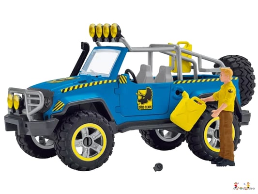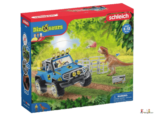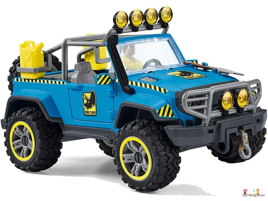 Mit dem Geländewagen kann LUIS schnell zum Aussenposten fahren und dort den Giganotosaurus mit Hilfe eines dicken Fleischköders einfangen. Für den Fall, dass er während der Fahrt im Sumpf stecken bleibt, kann er mit Hilfe seiner Werkzeugkiste mühelos den Reifen wechseln oder den Geländewagen mit der Seilwinde wieder herausziehen. Der Geländewagen mit Dino-Aussenposten von Schleich Dinosaurs bietet eine Vielzahl an Spielmöglichkeiten. Entdecke die gesamte Schleich Dinosaurs Welt und die spannenden Abenteuer der Colby Brüder.