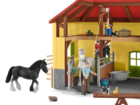 Der Schleich Pferdestall ist eine detailreiche Spielwelt, die Kreativität, Einfühlungsvermögen und motorische Fähigkeiten fördert – perfekt für kleine Pferdefans und Tierfreunde!