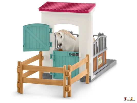 Auch Pferde brauchen mal eine Pause vom ganzen Pferdespass. Am besten geht das in der gemütlichen Pferdebox von schleich HORSE CLUB. An der Raufe können sie fressen und an der Tränke ihren Durst löschen. Achte darauf, dass sie genug zu sich nehmen. Schliesslich brauchen sie für deine Spielabenteuer jede Menge Energie. Das Set enthält eine Englisch Vollblut-Figur, eine Pferdebox, eine Tränke, Paddockteile und eine Heuraufe. Nach dem ganzen Ausreiten und Springen freut sich dein Englisch Vollblut-Pferd Moonlight auf eine wohlverdiente Pause. Die gemütliche Pferdebox ruft schon nach ihm! Nach einem Heu-Snack und einem Schluck Wasser fühlt sich dein Hengst direkt schon viel besser. Jetzt fehlen nur noch eine Kuscheldecke und sanfte Entspannungsmusik.