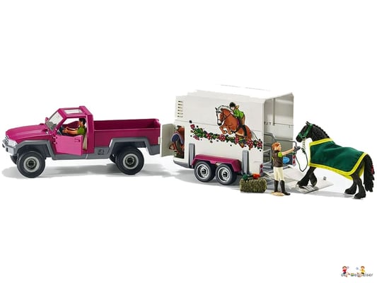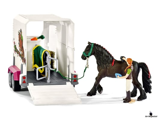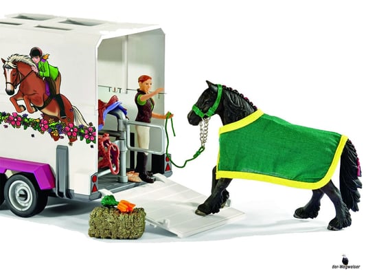Betty, die Sselten Pferdepflegerin, striegelt die Friesenstute Raja noch einmal gründlich, weil sie das besonders gerne mag. Das Pferd spürt, dass heute irgendetwas Besonderes passiert. Tatsächlich wird Raja nämlich heute in den neuen Stall gebracht. Nachdem sie gut versorgt ist, führt Betty sie vorsichtig in den geräumigen Pferdeanhänger. Raja hat ein ruhiges und friedliches Gemüt, trotzdem ist es aufregend für sie. Dann steigt Betty in den Pickup und langsam rollen sie vom Hof. Auf der Fahrt blickt sich die Stute neugierig um. Bald werden sie im neuen Stall sein und dann darf Raja erst einmal auf die Koppel.