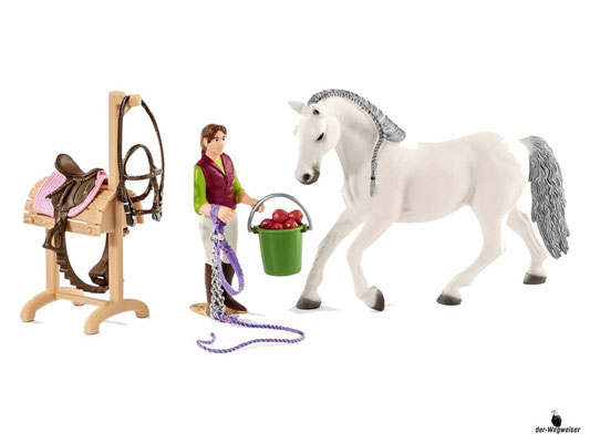 Nach dem Reiten kümmern sich die Mädchen liebevoll um ihre Pferde. Sie satteln ab, belohnen ihre Tiere mit knackigen Äpfeln und widmen sich der gründlichen Pferdepflege: Mit Striegel und Kardätsche wird das Fell gebürstet, die Mähne gekämmt und die Hufe kontrolliert.